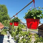 Vila Peaceful Little House In Ljubljana Pr Basc má výhled na zahradu a se nachází 10-minutovou jízdou k Stadium Stozice. Vila vám poskytne ovládání klimatizace, televizi a balkón v pokojích.